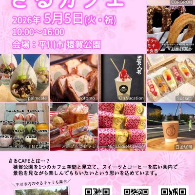 平川市観光に役立つ特設サイト Event開催予定イベント 春夏秋冬で表情を変える豊かな自然のなかで心踊る祭りや催し物を Spotおすすめスポット りんご、いで湯、自然が広がる、 津軽平野のまち、平川市。 歴史ある建造物や庭園も多く、 ゆっくり、じっくり見渡せば、 新たな感動に出会えます。 Food食・物産 気候に恵まれ、農業が盛んなまちでつくられる品々。 豊かな自然が物語る『おいしさ』が 楽しい旅をおもてなし。 Stay宿泊施設 温泉施設が多くある平川市。 お好みのお湯さがす 癒しの旅もいいですね。 Topics最新情報 2026年4月2日こいこい祭りin平川さくらまつり 2026年4月1日さくらスイーツマーケット~さるカフェ~【5/5 平川さくらまつり】 2026年3月30日猿賀公園のさくら開花情報2026 2026年3月28日ひらかわの冬フォトコンテスト2025入賞者発表! 2026年3月24日春のクラフトワークショップin平川さくらまつり 過去のトピックスはこちら Instagram 【明日4月22日(土)からは平川さくらま This error message is only visible to WordPress admins Facebook (一社)平川市観光協会
