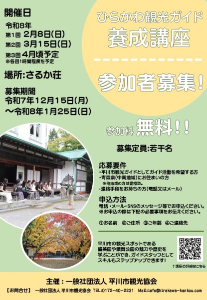 平川市観光協会ではひらかわ観光ガイド養成講座を行います🎵