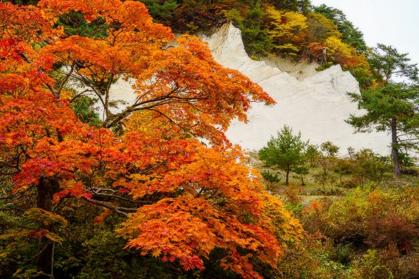 その白い岩肌をもみじが染め上げる様子は壮観な景色✨