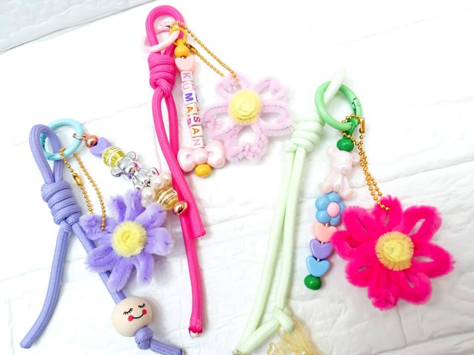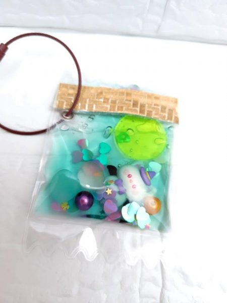 (かわいいパーツをビニールにつめて、オリジナルのキーホルダーが作れます)